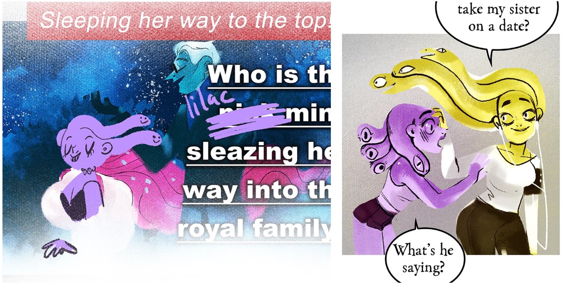 Allecto y sus compañeras gorgonas ocupan el papel de secuaces pícaros en Lore Olympus... en la misma línea que Lock, Shock y Barrel de Pesadilla antes de Navidad.