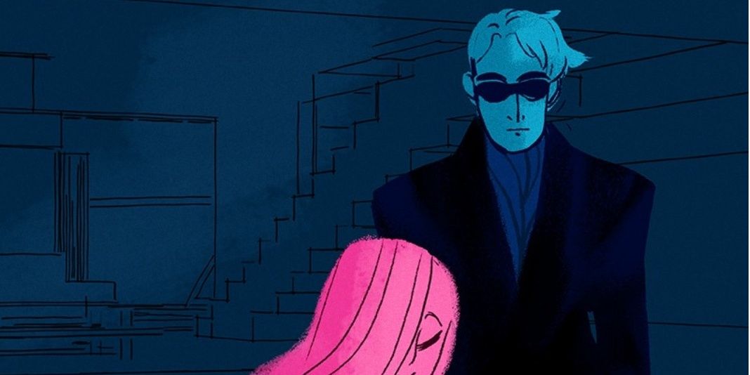 En una de las primeras escenas de encuentro con Perséfone, Hades y ella acuerdan ir juntos a un brunch y él se pone un conjunto imposiblemente genial: un elegante traje negro con una larga bufanda azul, gafas de sol redondas (que nunca vuelven en la serie). También hay algo que sucede aquí para jugar con el clásico look de Hollywood de la Edad de Oro de Perséfone mientras ella se dirige a su coche cubierto de piel.