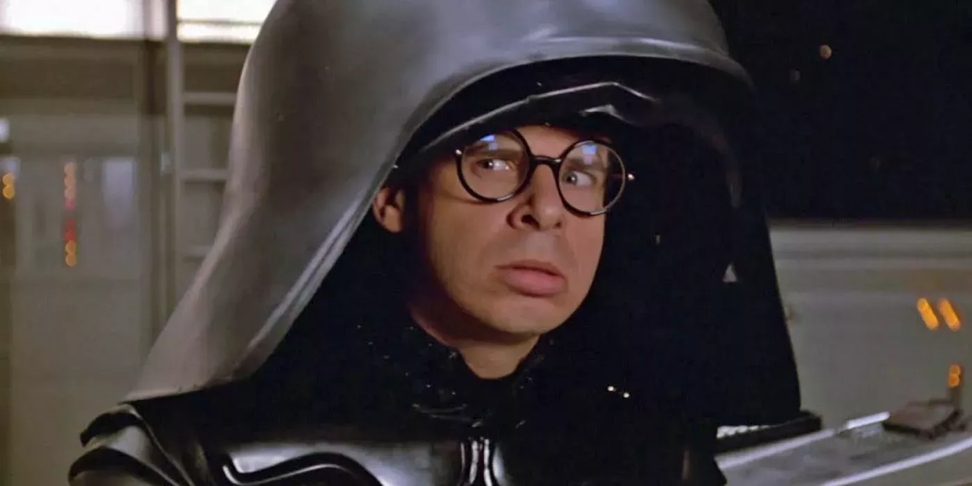 Rick Moranis ha interpretado muchos papeles divertidísimos, desde Seymour en La pequeña tienda de los horrores hasta Wayne Szalinski en Cariño, encogí a los niños. Apareció en algunas de las mejores comedias de los años 80 y 90, como Pequeños gigantes, Strange Brew, Los Picapiedra y Cazafantasmas, pero uno de sus papeles más importantes llegaría en forma de sátira de La guerra de las galaxias. Interpretó al villano de la película. Dark Helmet, la versión satírica de Darth Vader en La guerra de las galaxias, es una de las mejores bromas del cine de todos los tiempos. Totalmente opuesto a James Earl Jones, Rick Moranis es el actor perfecto para el papel. Convierte a Darth Vader en un personaje bajito, más débil y menos intimidante, y lo convierte más en un dictador serio que en realidad no tiene un control absoluto sobre todo lo que sucede.