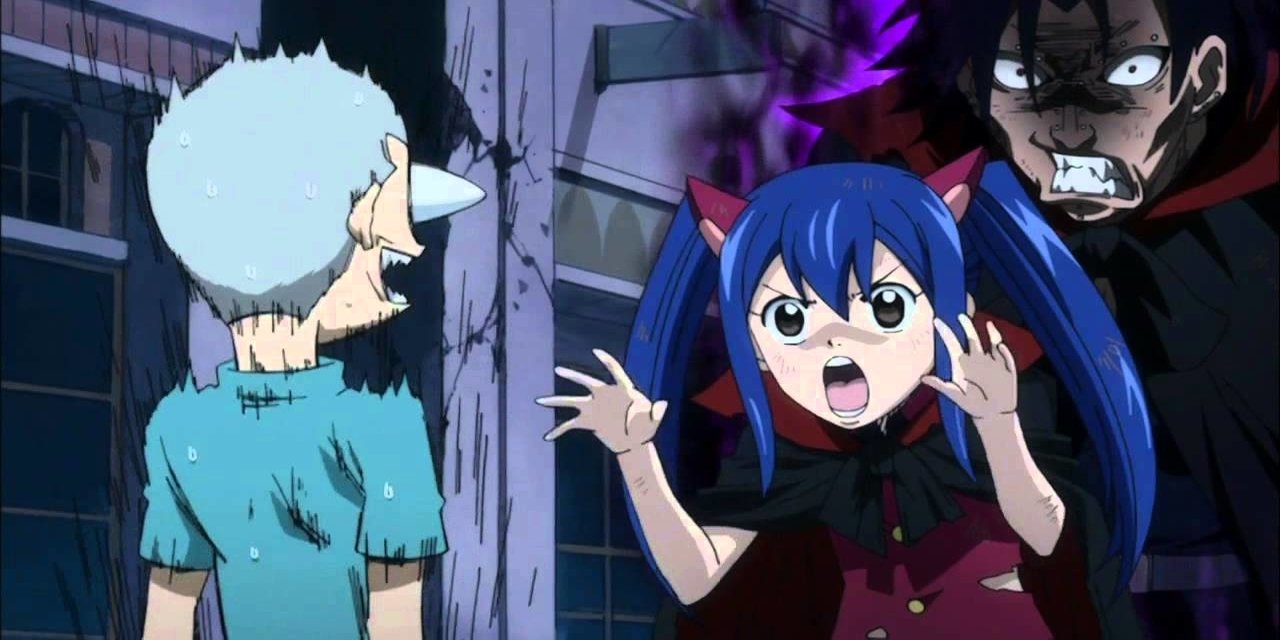 Mientras trata de asustar a una de las personas del pueblo, Wendy hace todo lo posible para poner una cara intimidante. Cuando Gajeel ve que no está funcionando, se asoma detrás de ella amenazadoramente, aterrorizando verdaderamente a la persona de Edola. La parte más graciosa fue que el Gran Demonio Lord Marvell pensó que lo había hecho ella misma!