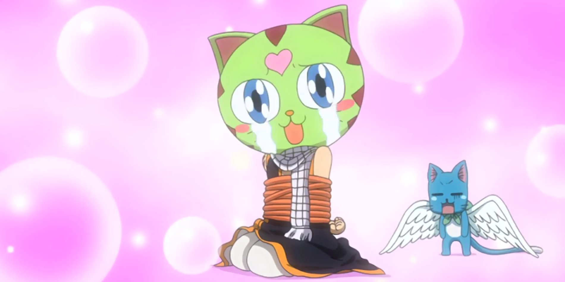 ¿Qué es más gracioso que Natsu atrapado dentro de una cabeza de gato? No mucho! En una de las primeras temporadas, Natsu se mete en un gran aprieto. Digamos que se le atasca la cabeza con un disfraz de gato y le cuesta mucho salir de él.