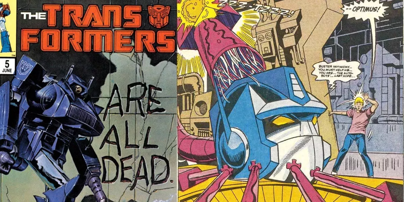 La miniserie inicial de Transformers, de cuatro números, terminaba con un cliffhanger extremo en el que Shockwave se situaba sobre una pila de Autobots muertos declarando la victoria. Una vez que se decidió dar continuidad a la serie, el número 5 comenzaba con Shockwave colgando los cadáveres de los héroes muertos mientras Buster Witwicky se colaba y se encontraba cara a cara con la cabeza incorpórea de Optimus Prime. El guionista Bob Budiansky y el artista Alan Kupperberg mostrarían a Prime concediendo a Buster la capacidad de reparar y restaurar a los muertos caídos, algo que se retomaría con el personaje de Sari Sumdac en Transformers: Animated.