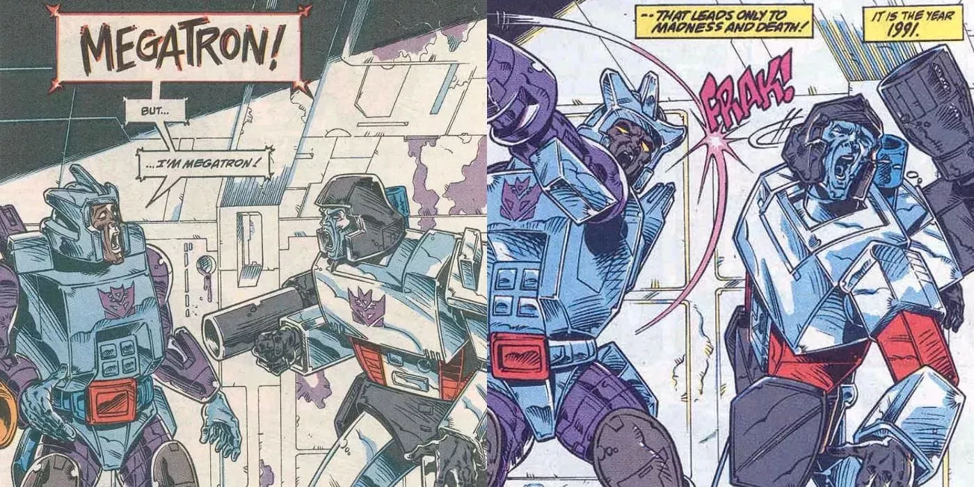 Por si no ha quedado claro hasta ahora, los acontecimientos de los años 80 de Marvel Comics contradicen explícitamente los de la serie de animación y el largometraje de Transformers. A diferencia de otras franquicias que mantienen una continuidad consistente a lo largo de su historia, la franquicia Transformers se enorgullece de la reinvención y la recontextualización. Uno de esos momentos es la forma en que la serie de Marvel trató a Galvatron: La reencarnación futura de Megatron a través de Unicron. Tal y como se contó en Transformers #77 por Simon Furman, Andrew Wildman, Stephen Baskerville, Nel Yomtov y Rick Parker, la versión futura del líder Decepticon viajó en el tiempo para reclutar a su yo del pasado en un intento de gobernar el universo. Con unos egos tan grandes, no es de extrañar que llegaran rápidamente a las manos.