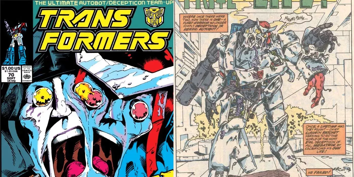 A finales de la serie de cómics de Transformers de Marvel, el guionista Simon Furman (junto con el dibujante Andrew Wildman) narró una de las historias más inquietantes de la franquicia. Junto con el entintador Stephen Baskerville, el colorista Nel Yomtov y el dibujante Rick Parker, Transformers #70 "The Pri¢e of Life!" vio cómo el líder Decepticon Megatron y el médico Autobot Ratchet se fusionaban tras un colapso interdimensional en el que quedaron atrapados meses antes. Gracias a la destreza de Fixit, ambos cibertronianos son devueltos a sus formas originales y se les deja lidiar con lo que debe ser un tremendo trauma psicológico.