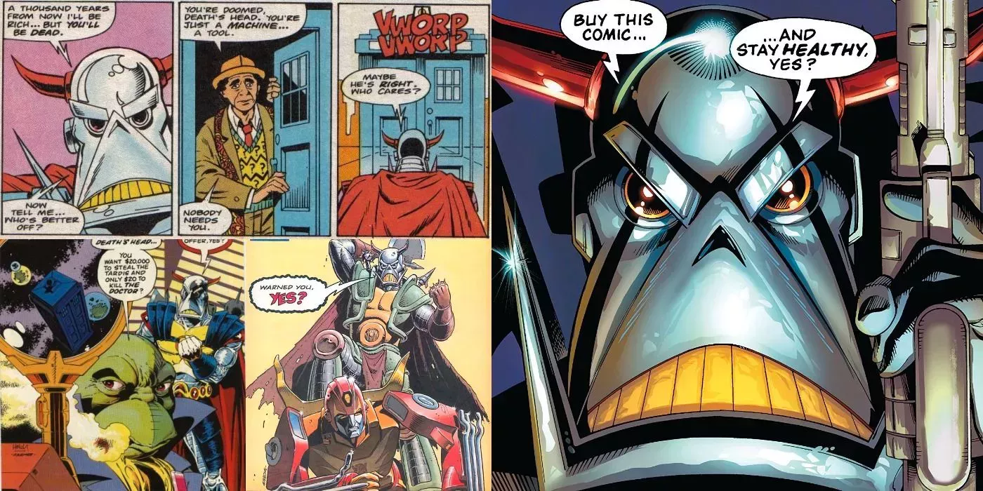 Creado por primera vez por Simon Furman y Geoff Senior en la edición británica de Transformers #113, Cabeza de Muerte era adorablemente peculiar y no era en absoluto un cazarrecompensas. Sus aventuras posteriores le llevarían a cruzar el multiverso para enfrentarse a personajes como el Doctor Who y la Autoridad de la Varianza Temporal de Marvel.