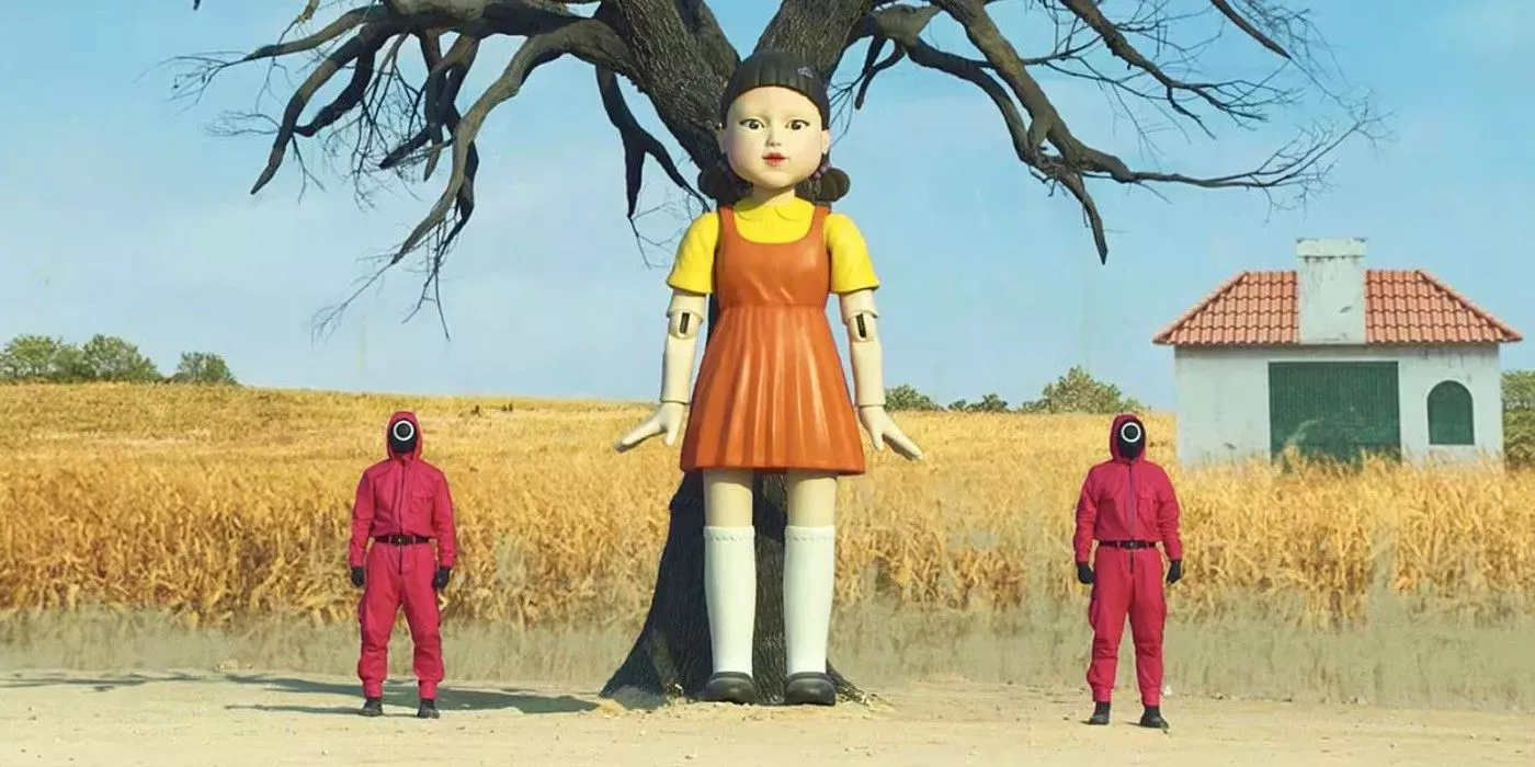 En esta fase del concurso, los concursantes originales tienen que llegar al otro extremo de un campo mientras evitan ser vistos por un muñeco con sensor de movimiento. El muñeco está inspirado en un personaje de los libros de texto de Corea del Sur y parece inofensivo al principio, pero eso cambia muy rápidamente cuando el primer concursante es "visto" y eliminado. El pandemónium sobreviene cuando los jugadores se dan cuenta del horror de su situación. Mientras tanto, los ojos del muñeco giran en sus cuencas casi con avidez. El extraño plano hace que parezca un monstruo de una película de terror, y puede recordar a algunos espectadores a Chucky.