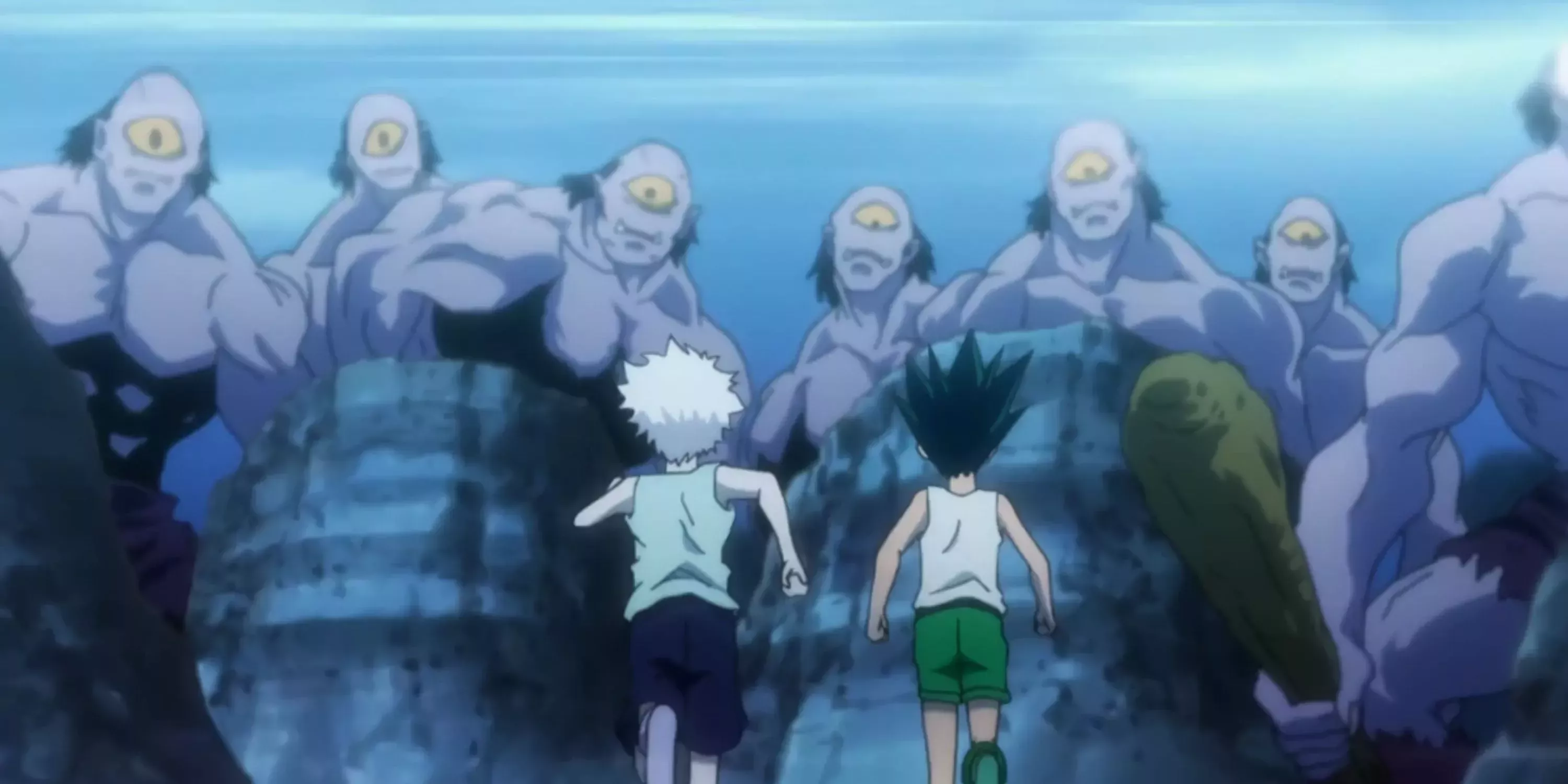 Cuando Gon y Killua entran en una zona conocida como Badlands, son emboscados por un grupo de Cíclopes. Estas criaturas de un solo ojo son enormes, y si no fuera por la enorme debilidad que provocan sus ojos, podrían haber dado serios problemas a la pareja de Cazadores.