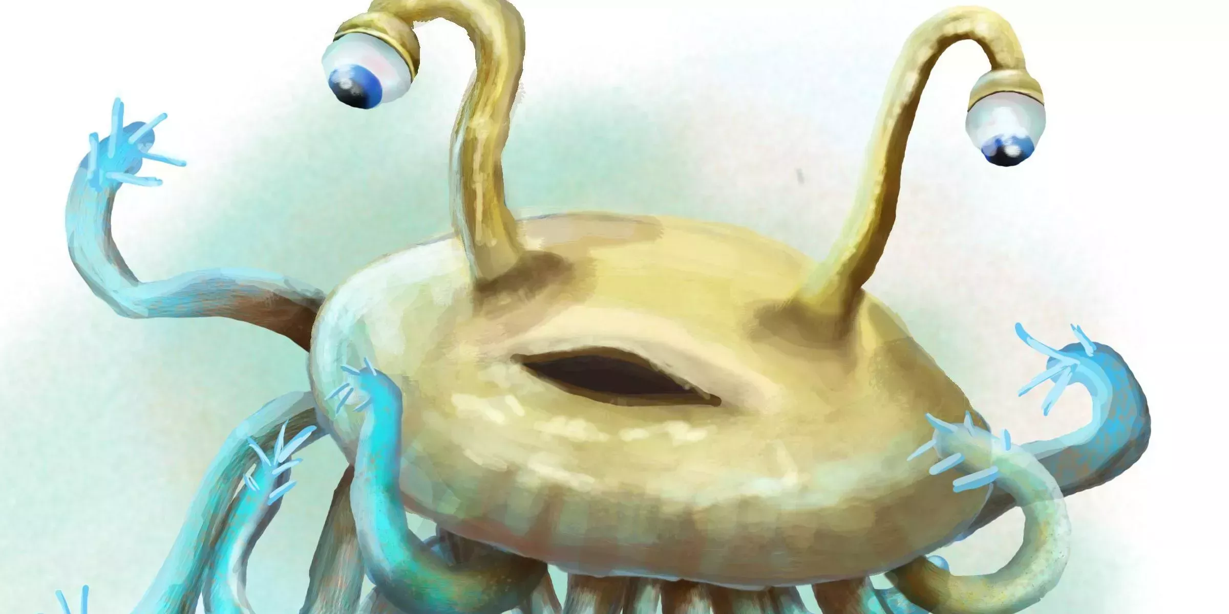 Los ojos de los Flumphs, junto con sus amplias sonrisas tontas, hacen que el arte de D&D sea fácil de presentar en una luz tonta. Imaginar a una de estas medusas flotantes acercando un zarcillo a su boca cómicamente grande para jadear o poniéndose roja para mostrar su enfado son formas estupendas de aligerar el ambiente y mantener a los jugadores entretenidos.