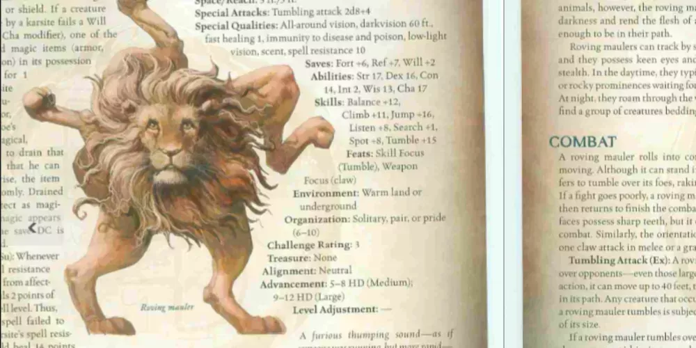 La idea de una amalgama de estrella de mar y león rodando por los pasillos de una mazmorra provoca una imagen hilarante, pero los jugadores también se preguntan qué significa esto para la propia bestia. ¿Siempre está mareada? ¿Cómo de difícil es que un mauler errante se detenga en el punto exacto en el que quiere estar? ¿Cómo se mantiene en pie si es golpeado de espaldas? Responder a estas preguntas deja mucho espacio para que los DMs sean creativos y dejen a sus jugadores riéndose durante días.