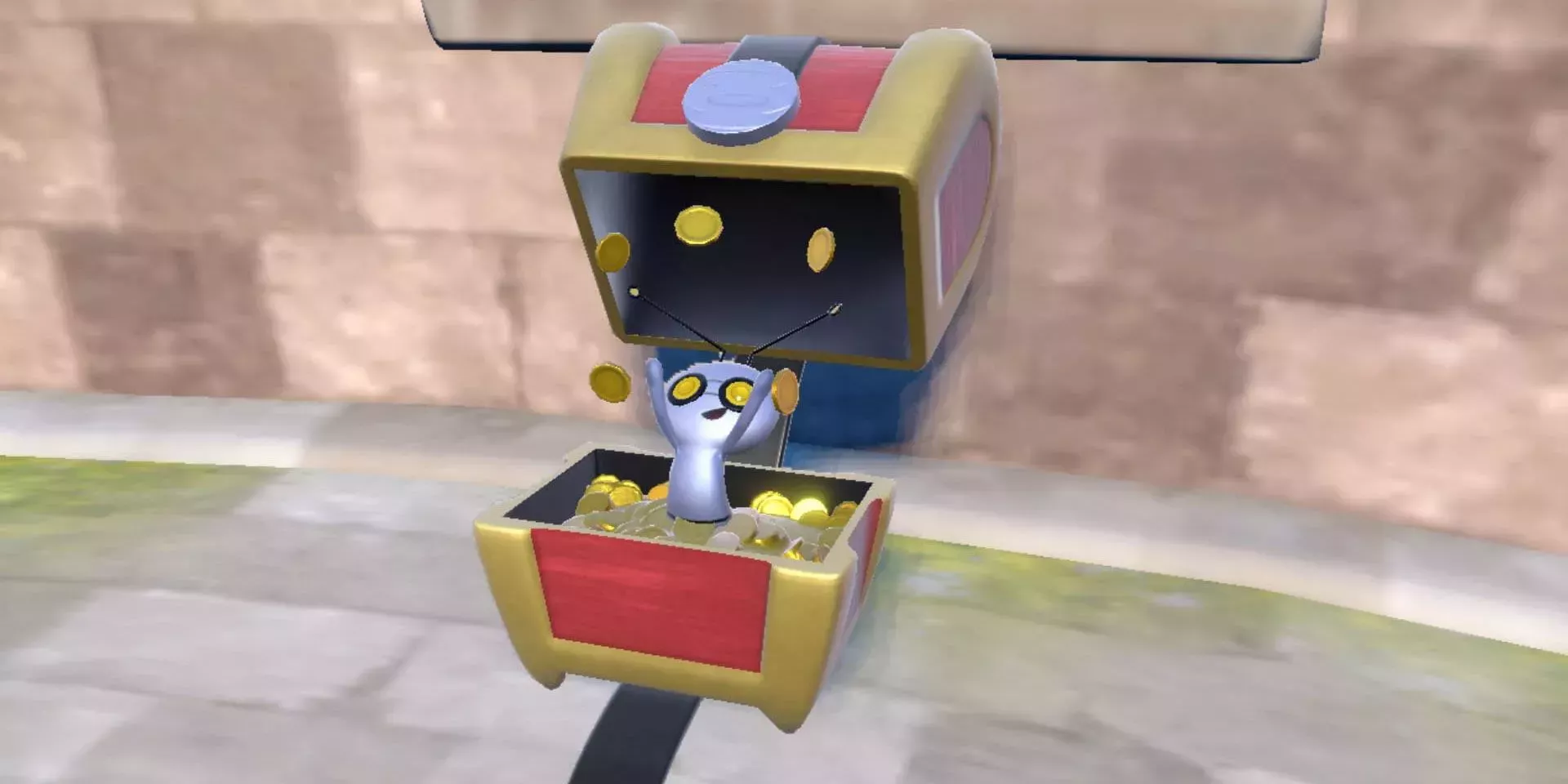 Recoger las monedas de la Forma Itinerante de Gimmeghoul lleva una eternidad, por lo que los jugadores se ven incentivados a encontrar las Formas Cofre dispersas por Paldea, que suelen encontrarse en lo alto de las torres. Cada cofre derrotado da monedas que se cuentan por decenas, mientras que Gimmighoul errante rara vez deja caer más de cinco monedas.