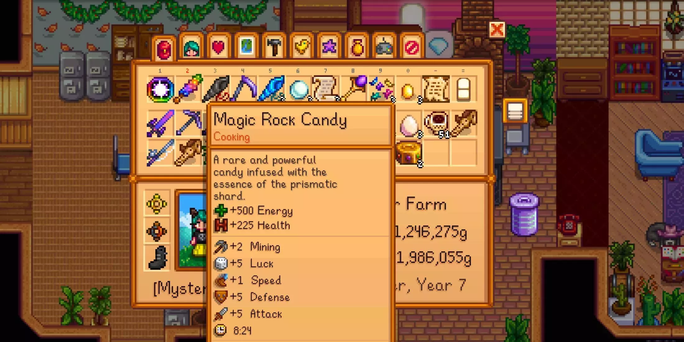 Sin embargo, los Caramelos de Roca Mágica son muy difíciles de conseguir. Seguro que los jugadores se han encontrado con un par durante su viaje por Stardew Valley. Por ejemplo, pueden conseguir uno como 22ª recompensa de la Máquina de Premios o como recompensa por donar 90 objetos al Museo. Pero salvo en estos casos únicos, hay muy pocas probabilidades de conseguir este caramelo de las Cajas Misteriosas o de los monstruos.