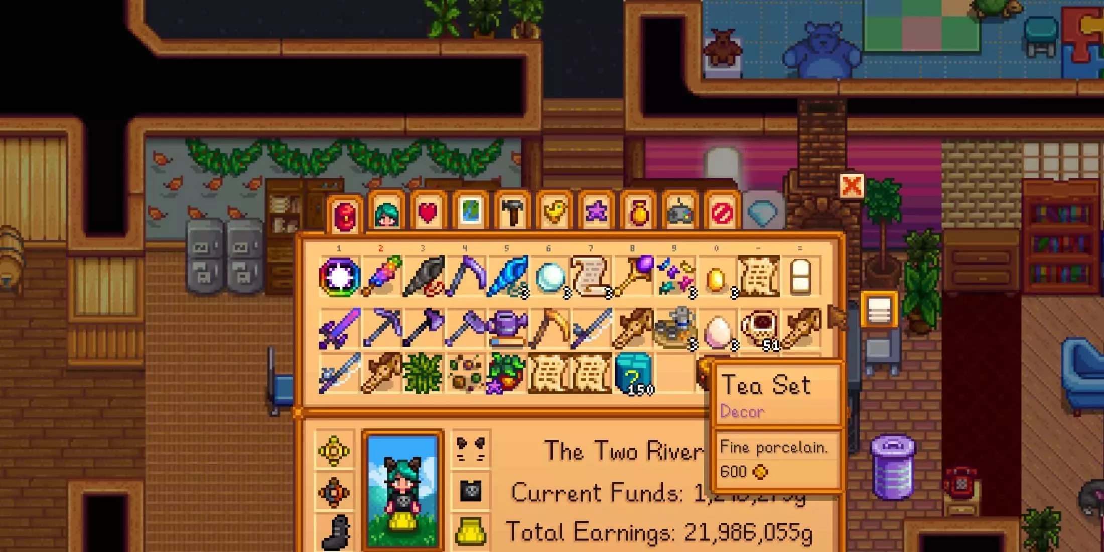 .Para ser un mueble tan corriente, el Juego de Té es ridículamente difícil de conseguir. Los jugadores solo tienen una oportunidad al año, y depende totalmente de la suerte. Algunos jugadores dicen que lo consiguieron en su primer año jugando a Stardew Valley y que ni siquiera sabían que era tan valioso. Mientras tanto, otros jugadores pasan varios años en el juego antes de ver el codiciado objeto de mobiliario.