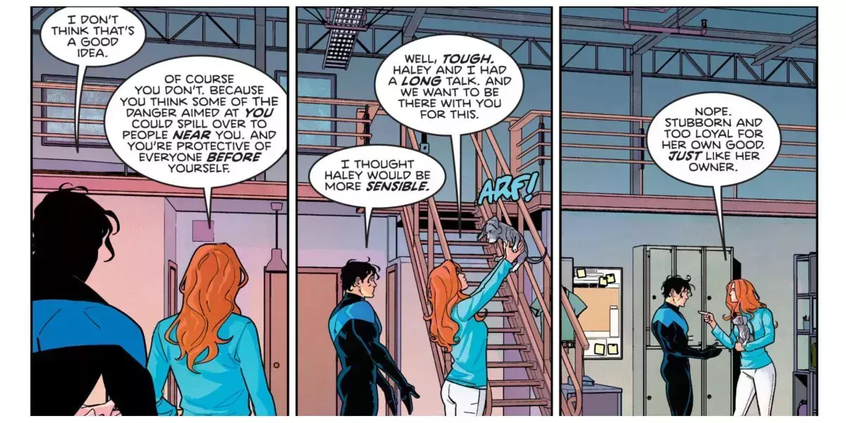 Cualquier lector puede ver que Dick tiene un don para enseñar a los demás. Su intelecto, su dedicación al trabajo y su consideración por los demás hacen de Nightwing uno delos mejores líderes deDC Comics. Sin embargo, tal vez como parte de su preocupación por acercarse demasiado a los demás, suele acabar de vuelta en Bludhaven haciendo de las suyas, ignorando lo que le gusta y lo que le resulta natural.