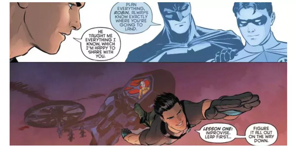 Batman era un maestro del tipo "haz lo que yo hago y lo que yo digo". Afortunadamente, desde muy joven, Dick aprendió que algunas cosas no deben ser emuladas. Cuando Nightwing superó la sombra del murciélago, se redefinió a sí mismo tomando las mejores lecciones de Batman y dejando atrás las peores. Como resultado, Dick se volvió más confiado con los demás, en contra de la filosofía de Batman.