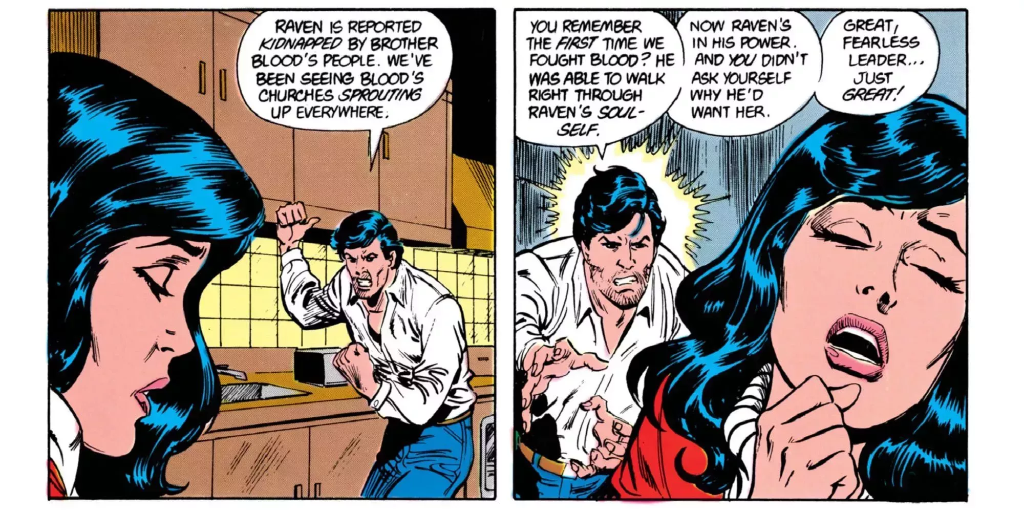 Nightwing se dedica a su trabajo de llevar a los malhechores ante la justicia. Tanto es así, que lleva su trabajo a casa y, en ocasiones, elige el trabajo antes que pasar tiempo con sus amigos o su relación actual. Tanto Barbara Gordon como Kory han experimentado el abandono en aras de la justicia de los justicieros. El crimen nunca se detiene, y Nightwing tampoco.