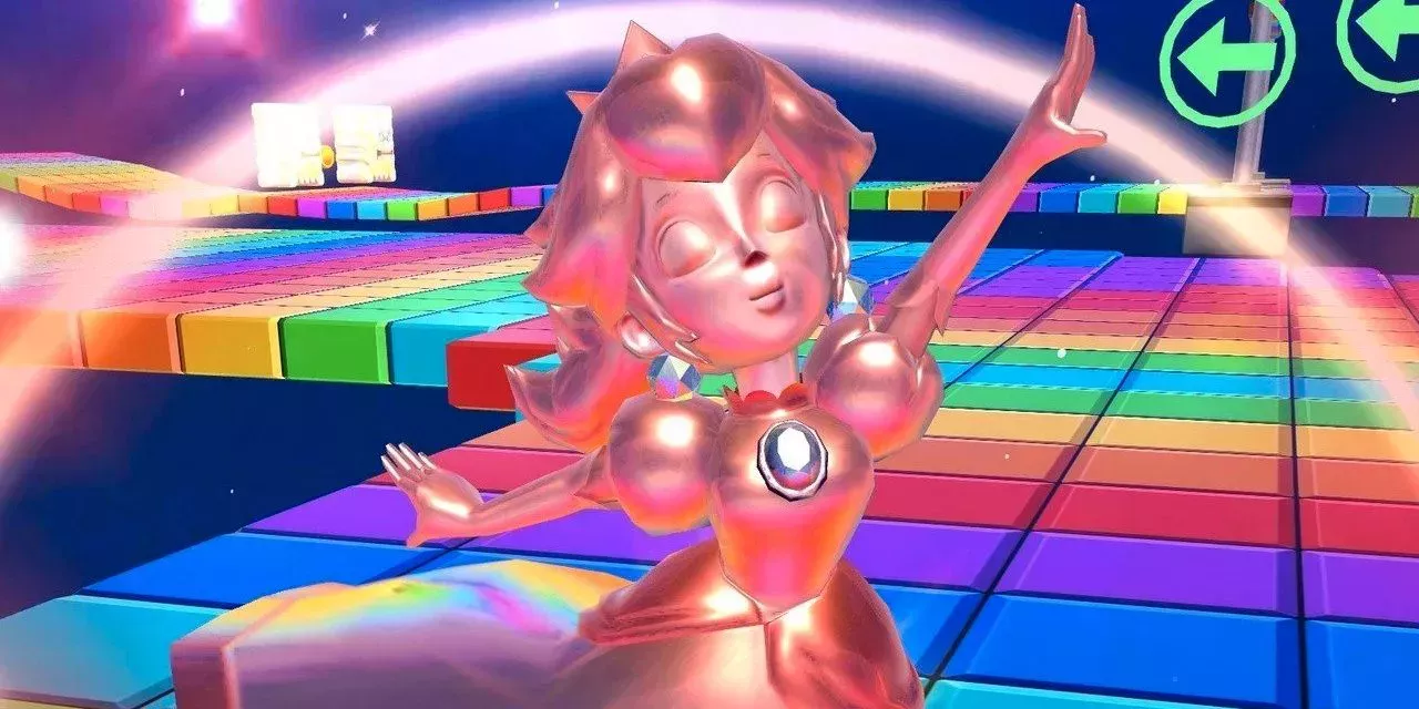 El éxito continuado de la serie de Mario , filial de Nintendo, ha dado lugar a listas de personajes hinchadas que han incorporado más y más personajes terciarios de Nintendo a la mezcla. También se han creado algunos personajes originales que se basan en ideas conocidas. Pink Gold Peach se supone que es una variación de Metal Mario, pero este último ocupa una parte importante del legado de Super Mario por su papel en Super Mario 64 . Pink Gold Peach no es más que un perezoso cambio de paleta para una idea a medias. El personaje aparece por primera vez en Mario Kart 8 , pero también está en otros juegos.