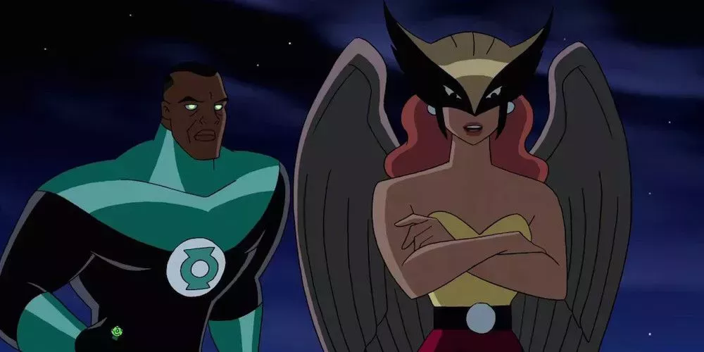 Shayera Hol, conocida por el apodo de Hawkgirl, fue miembro de la Liga de la Justicia en la serie homónima de 2001 junto a otros héroes como John Stewart como Linterna Verde y Bruce Wayne como Batman. Aunque luchó junto a estos héroes durante años, también se reveló como espía de los Thanagarianos en la Tierra, lo que creó una ruptura entre ella y el resto del equipo.
