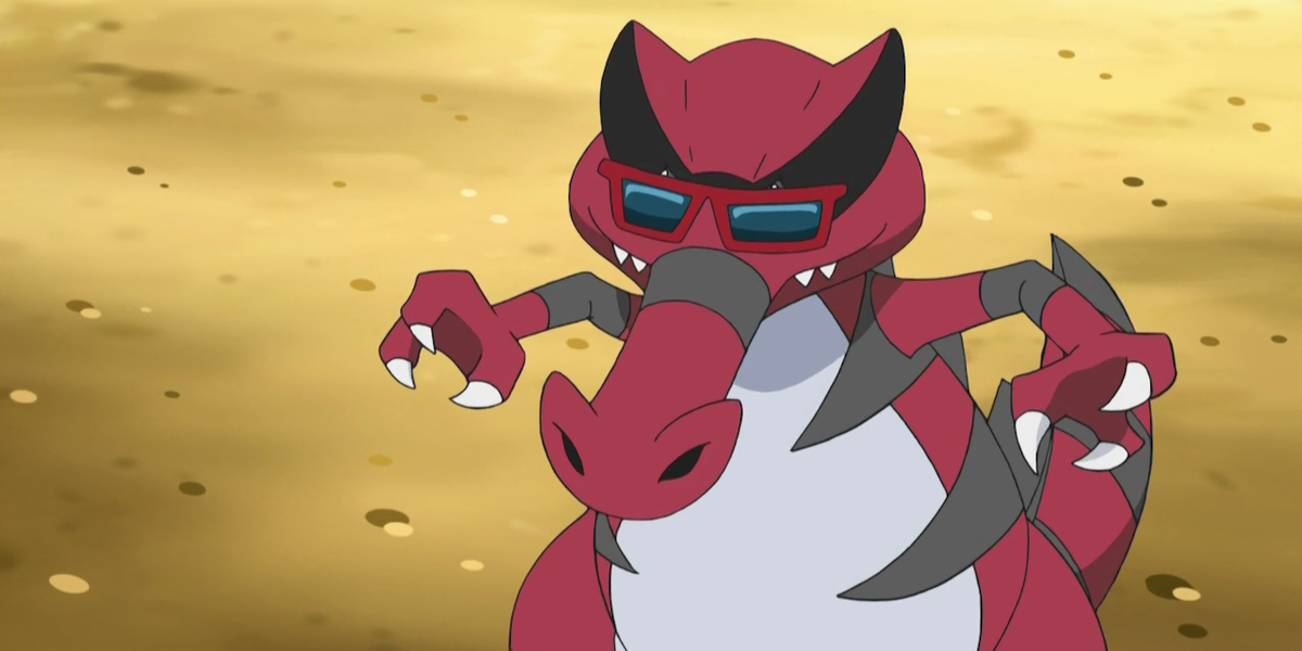 Krookodile no solo se ve bien, sino que lucha contra otros Pokémon con styleーhe solía llamarse la Gafa de Sol Sandile y Gafas de Sol Krokorok. Por suerte, Krookodile tenía una buena relación de entrenador/Pokémon con Ash, y luchó en varias batallas con él.