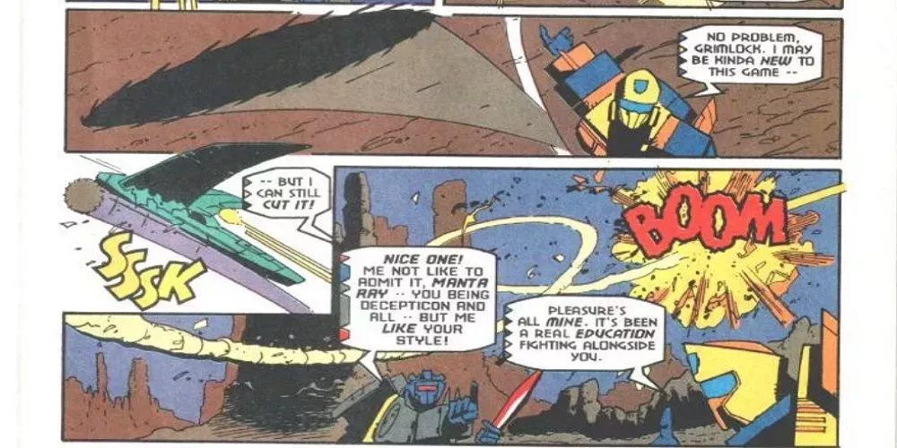 Sin necesidad de luchar contra los Autobots, Manta Ray consiguió rápidamente hacerse popular entre los Autobots gracias a su carisma. Incluso consiguió caer bien a los Dinobots, que nunca parecían caer bien a nadie fuera de los suyos. Al final, se pasó al bando de los Autobots, y desde entonces ha aparecido en los cómics.