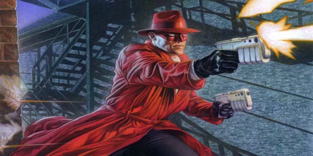 Utilizando su entrenamiento de nivel olímpico y sus pistolas de gas para aguantar, el Vengador presentaba un diseño similar al del personaje del serial radiofónico, La Sombra. Al presentar al personaje, Wing, Travis tuvo un compañero antes que Batman. Aunque al principio vestía una gabardina roja y una máscara, el Vengador Carmesí y su compañero se pusieron trajes más superheroicos cuando ayudaron a fundar los Siete Soldados de la Victoria.
