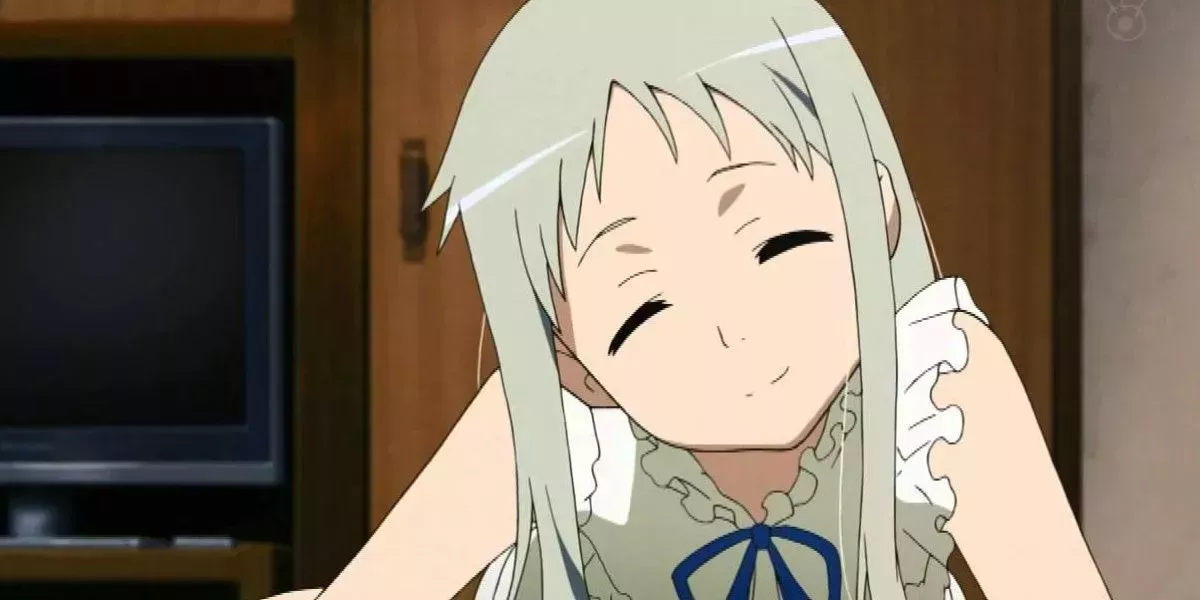 A pesar de haber muerto años antes, parece envejecer un poco cuando se le aparece a Jinta como un fantasma. Jinta es el único que puede verla, y su grupo de amigos debe reunirse para cumplir el deseo de Menma. El anime es muy emotivo.