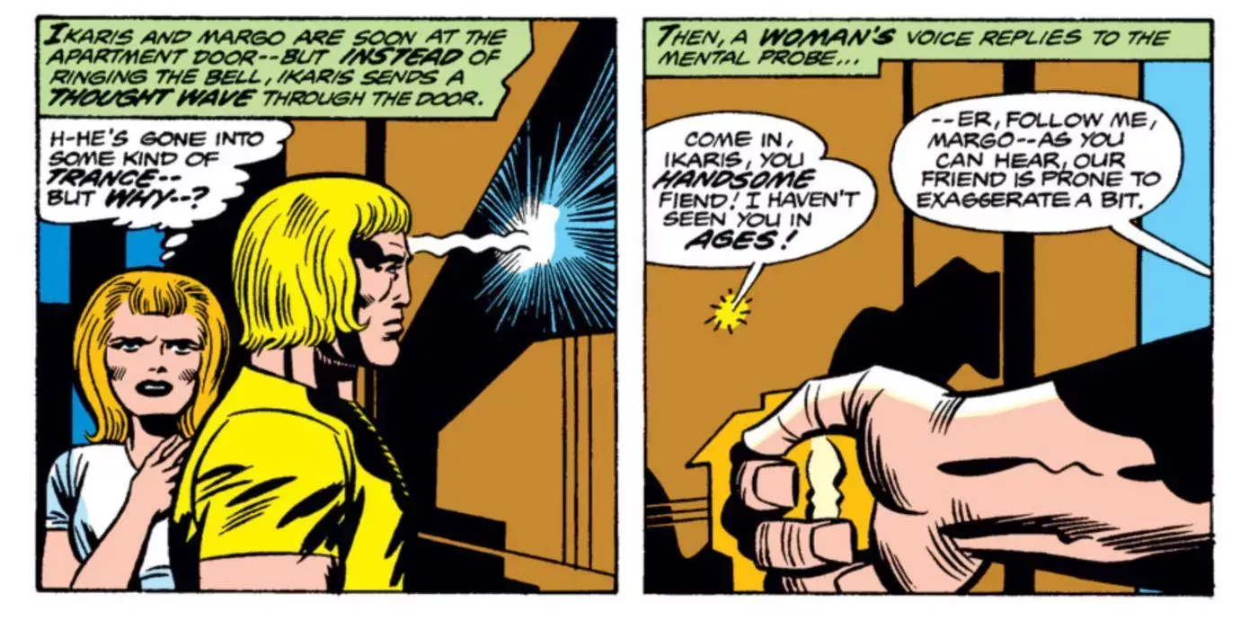 La visión térmica de Superman se explica por la capacidad del héroe de DC de afinar las longitudes de onda más fuertes de su visión de rayos X, pero los rayos oculares de Ikaris proceden de células de su cuerpo que almacenan energía cósmica y electromagnética. En el número 2 de los Eternos, publicado en 1976, Ikaris llegó a utilizar un rayo ocular de baja intensidad para dejar inconsciente a un humano.