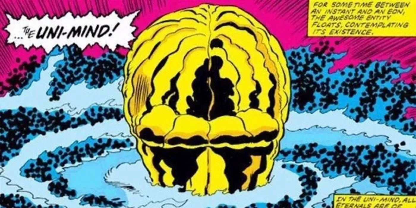 La "Uni-Mente", una convergencia de Eternos de nombre hilarante presente en los cómics y utilizada al final de la película de los Eternos , suele ser el último recurso del grupo en tiempos de conflicto. La formación de la Uni-Mente ha adoptado muchas formas y explicaciones de su uso a lo largo de la historia de los Eternos. Dichas formas incluyen: la aparición de un gigantesco cerebro dorado, un ser humanoide de energía verde y una convergencia tecnológica de poder cósmico compartido. Una habilidad que hace que los Eternos sean más fuertes cuando se unen, la Uni-Mente es el Voltron de los Eternos, sólo que sin el enorme traje mecánico.