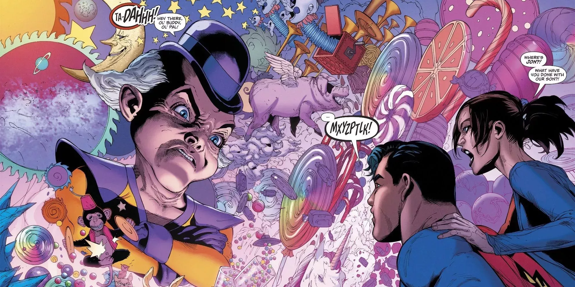 A primera vista, el Sr. Mxyzptlk parece un alegre embaucador y eso es cierto hasta cierto punto. Es sobre todo un travieso diablillo de la Quinta Dimensión que trata de entretenerse, pero eso es mucho más aterrador de lo que parece. Mxy puede hacer prácticamente lo que quiera y un poder así en manos de alguien como él puede ser algo muy aterrador.