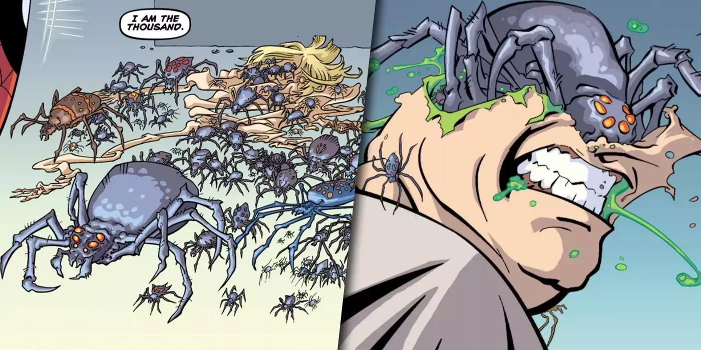 En cambio, mutó en una monstruosa mente colmena de arañas que podía consumir a los demás desde dentro. Luego llenaba sus cuerpos con sus arañas y usaba su piel. Pasó años construyendo su poder para enfrentarse a Spider-Man consumiendo a otros. King se convirtió en The Thousand, aunque murió tras un contacto accidental con un panel eléctrico que frió sus arañas.