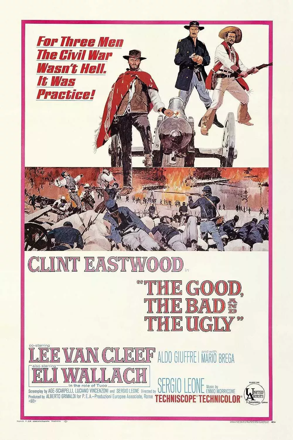 A menudo citada como la obra maestra de Sergio Leone, El bueno, el malo y el feo sigueal Hombre sin Nombre cuando se asocia con un forajido local, Tuco, para estafar a los pueblos: Cobra la recompensa, libera a Tuco de la horca y pasan al siguiente pueblo. Tras una discusión entre ambos, quedan unidos por el hecho de que cada uno posee la mitad de la información que les conducirá al oro enterrado. Obligados a trabajar en equipo, se abren camino a través del Oeste, enfrentándose a pistoleros, convirtiéndose en prisioneros de la Guerra Civil y sorteando la propia guerra.