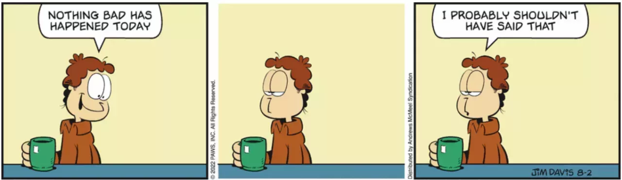 En esta sencilla tira cómica, Davis transmite con franqueza e hilaridad el pavor existencial cotidiano que sentía Jon. Tan pronto como Jon se alegraba de que no hubiera pasado nada malo, como se cansaba de que pudiera pasar algo malo.