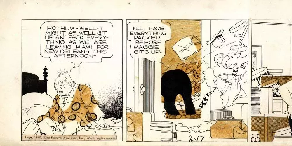 Bringing Up Father, que se publicó durante 87 años, fue un cómic muy querido que terminó en 2000. Bringing Up Father , retitulada posteriormente Jiggs and Maggie por el nombre de sus dos protagonistas, seguía a Jiggs y Maggie, que habían ganado un millón de dólares en un sorteo. Los dos se yuxtaponen de forma humorística, ya que a Jiggs no le gusta la alta vida a la que le han empujado, pero su mujer se dedica a encajar en la alta sociedad.
