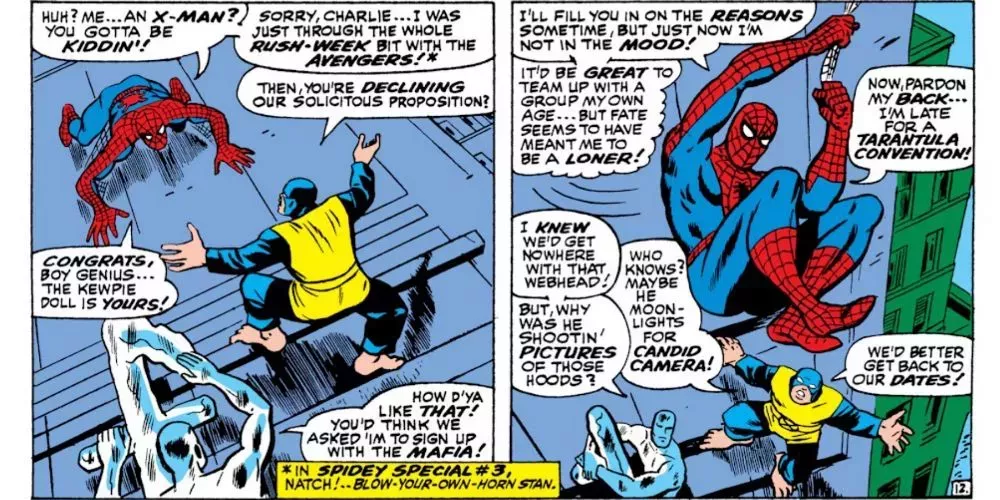 Bestia e Iceman se acercaron al lanzarredes, ofreciéndole un puesto en el equipo. Por desgracia, en ese momento, Spiderman ya había decidido llevar una vida como héroe solitario. Spiderman los rechazó rápidamente, argumentando que ya había rechazado a los Vengadores. Sería interesante saber qué habría pasado si el trepamuros hubiera aceptado unirse a los X-Men como miembro permanente.