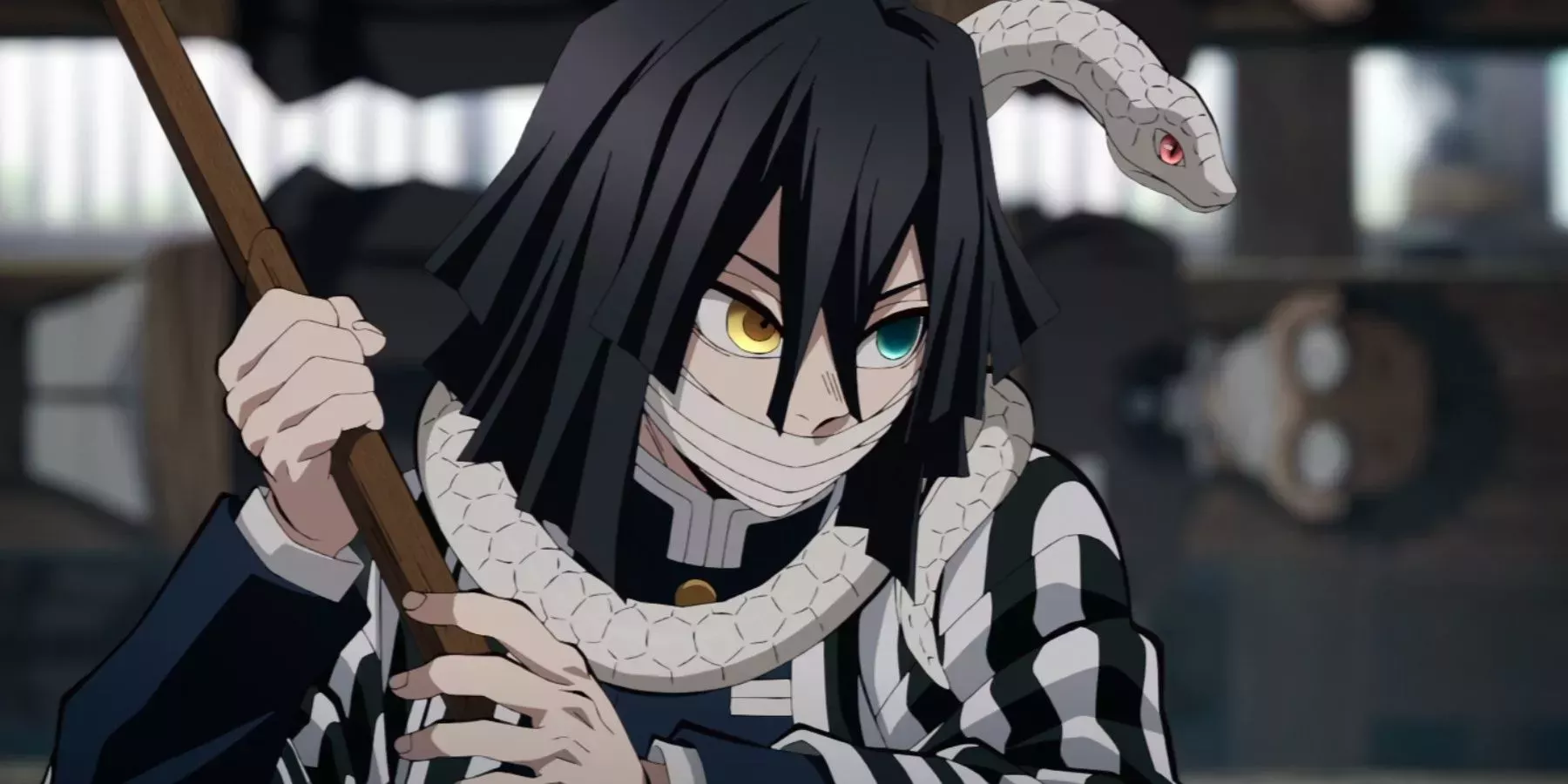 Obanai Iguro es el Hashira Serpiente, y no sólo porque tenga una serpiente como mascota. Su estilo de lucha se basa en la flexibilidad y en los movimientos elegantes, que permiten a su espada serpentear a través de cualquier obstáculo para dar en el blanco. Esto ayudó a inspirar su brutal pero efectivo régimen de entrenamiento en el arco de entrenamiento Hashira, desafiando a Tanjiro a golpear con fluida precisión como una serpiente.