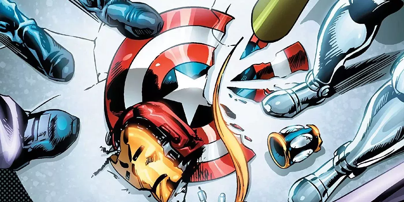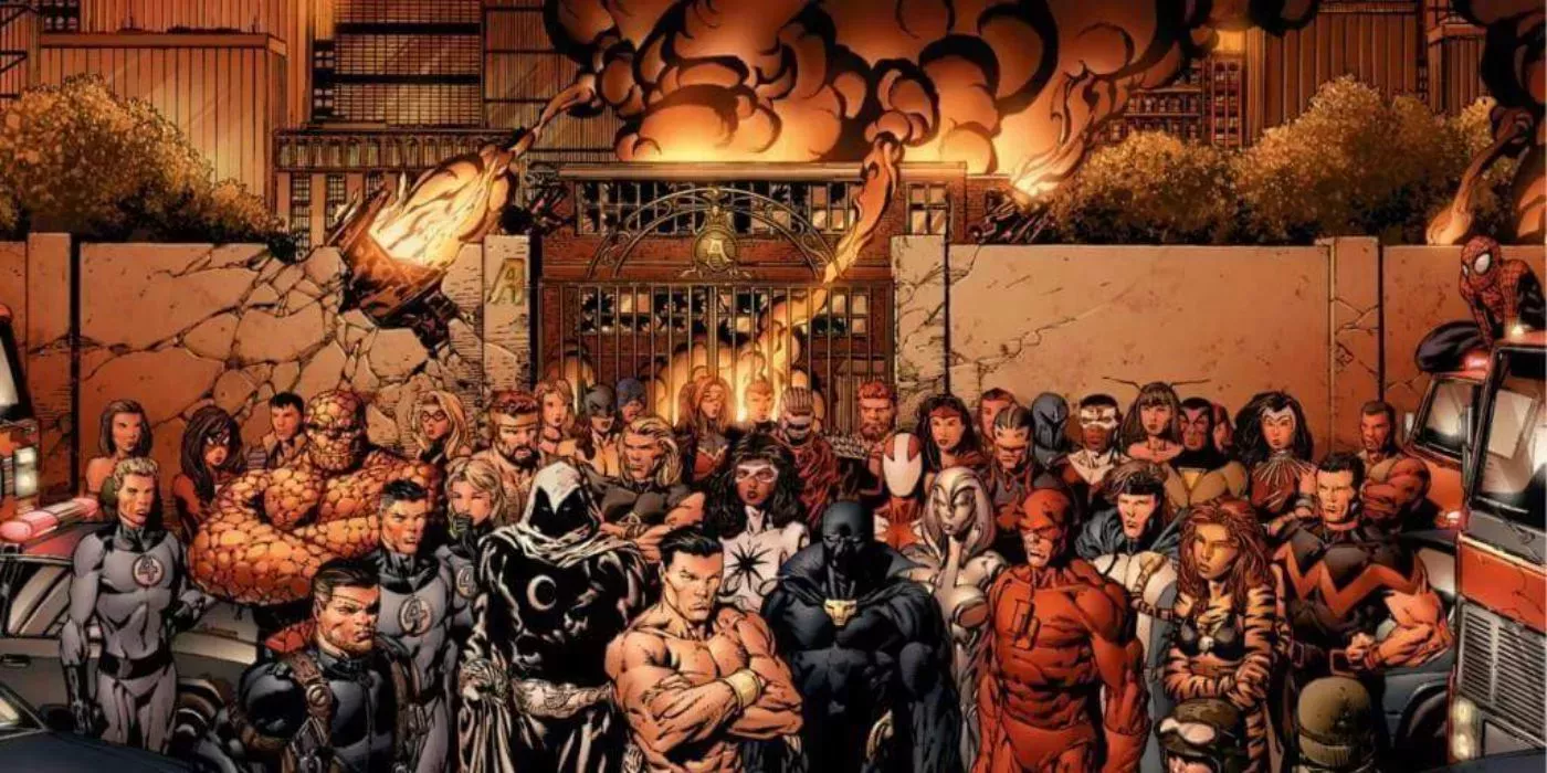 Con la pretensión de contar "el peor día de la historia de los Vengadores", Avengers Disassembled narraba una serie de acontecimientos fuera de control. Desde una desastrosa rueda de prensa del entonces Secretario de Estado Tony Stark hasta la detonación de la Jota de Corazones por un enemigo desconocido y la destrucción de la Mansión de los Vengadores.