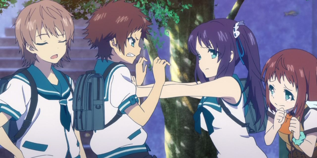 5 Anohana: Meiko Honma x Jinta Yadomi x Naruko AnjouAunque es conocida por ser un anime extremadamente triste, Anohana: La flor que vimos ese día tiene un triángulo amoroso entre Meiko Honma y Naruko Anjou hacia Jinta Yadomi. Este es un escenario interesante ya que Jinta no se ha recuperado del paso de Meiko, conocida como Menma. Jinta quiso confesar sus sentimientos a Menma antes, pero nunca tuvo la oportunidad.