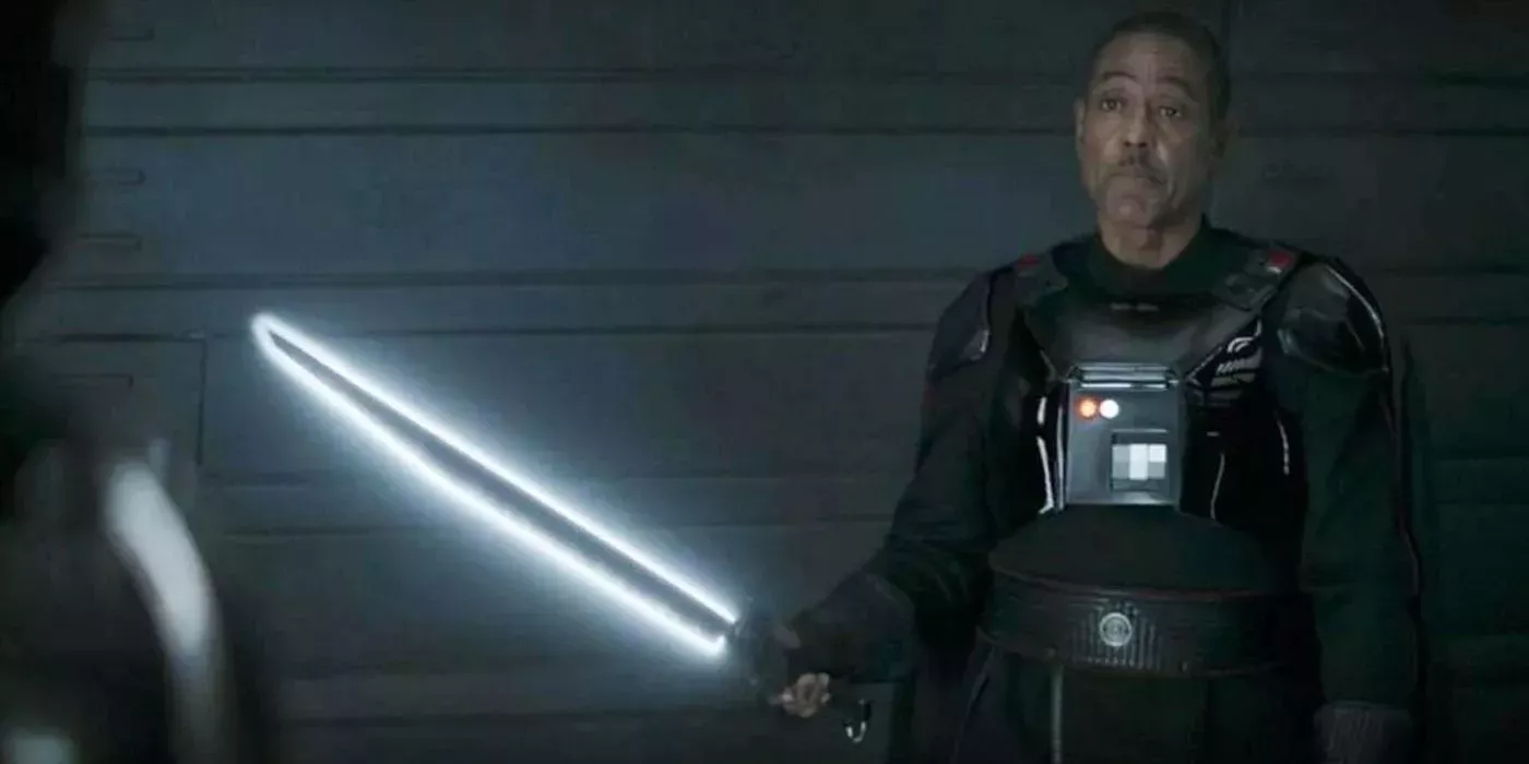 El sable de guerra acabó en manos del despiadado Moff Gideon en El Mandaloriano. Lo utilizó en sus intentos de provocar el regreso del Imperio tras los acontecimientosde la trilogía original de Star Wars. El Darksaber es un sable láser legendario con mucha sangre en su historia que sigue afectando al pueblo mandaloriano.