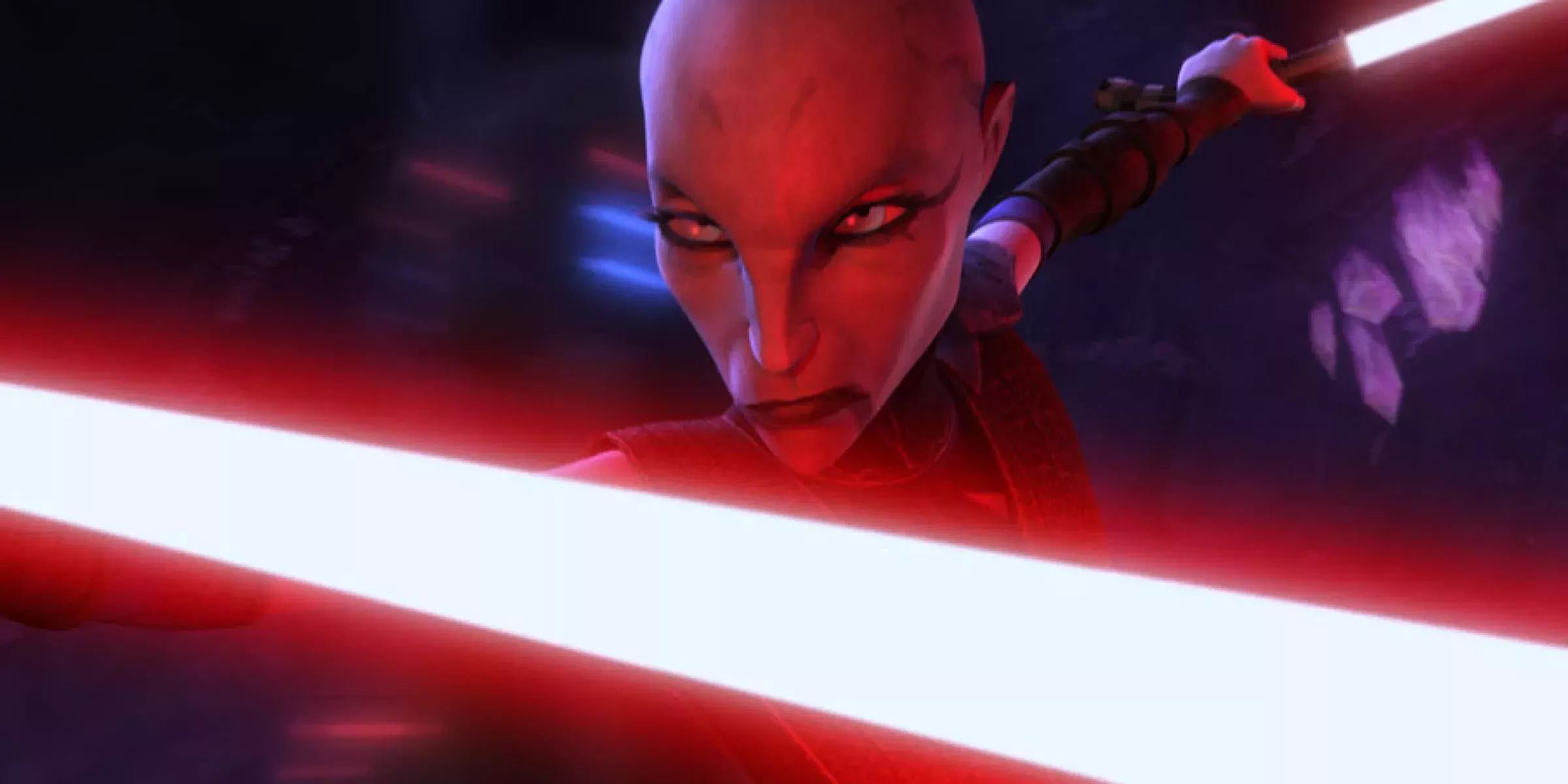 12/18 Asajj Ventress blandía dos sables láser como una temida Sith