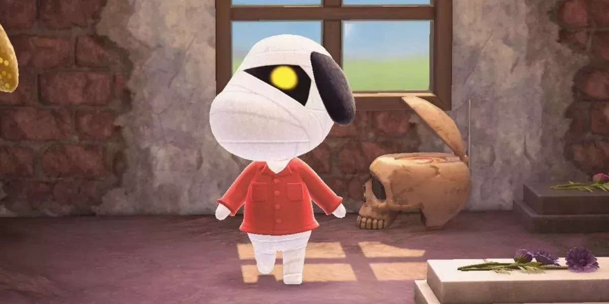 Lucky es una momia-perro aldeano que tiene la cantidad perfecta de ternura y espeluznante. Su único ojo amarillo brilla a través de las vendas, lo que acentúa su inquietante aspecto. Sin embargo, es uno de los aldeanos más felices de Animal Crossing: New Horizons.