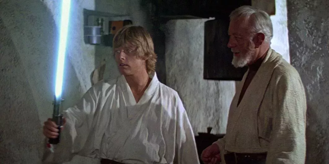 El sable láser se convirtió en un icono cultural inmediatamente después de su debut en La Guerra de las Galaxias. Era una espada láser utilizada por los Jedi y los Sith en sus batallas por toda la galaxia. Sólo se vieron tres en Una nueva esperanza. Aparecieron más en películas posteriores hasta que la Trilogía de las precuelas empezó a mostrar cientos de Jedi con sus propios sables láser.
