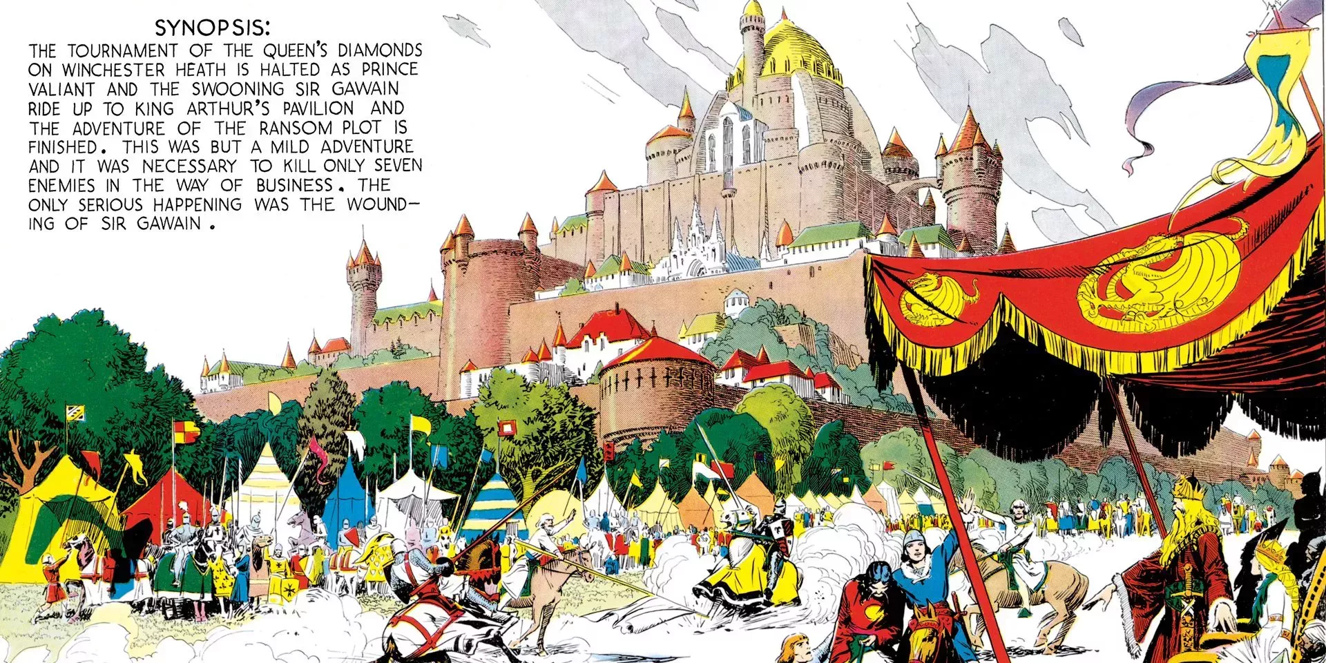 Prince Valiant empezó más orientado a la fantasía, con criaturas y escenarios extravagantes. Poco a poco, fue adquiriendo un carácter más histórico e incluyó a varias figuras del siglo V, como Atila el Huno. Con su arte profusamente detallado y su prosa florida, esta tira de Kings Syndicate Feature ha demostrado ser una lectura estupenda e influyente que muchos lectores que intentan profundizar en la lengua inglesa pueden apreciar.