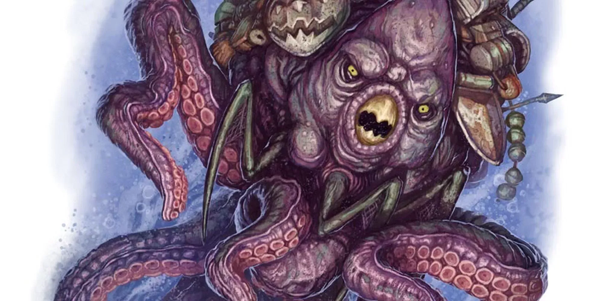 Los Aboleths son monstruos eldritch e icónicos de D&D 5e, inspirados en los terrores de las profundidades que se encuentran en la obra de H. P. Lovecraft. Los Aboleths residen en las profundidades de antiguos mares y lagos. Un elemento fijo de D&D desde la primera edición del juego, los aboleths son seres antiguos que utilizan sus habilidades psíquicas para esclavizar a otras criaturas.