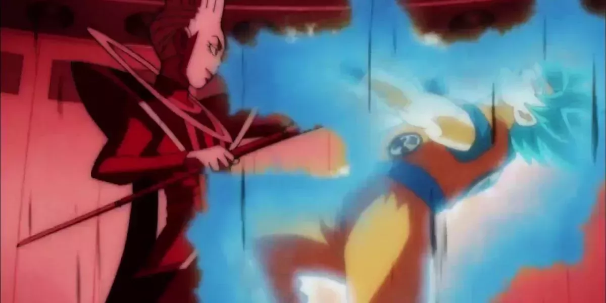 Dicho esto, Whis se enfrenta a Goku y Vegeta como alumnos y los abruma a ambos con cero dificultad. Además de su intensa fuerza, Whis puede crear dimensiones de bolsillo en su bastón para realizar Do-Overs temporales que rebobinan el tiempo mismo.