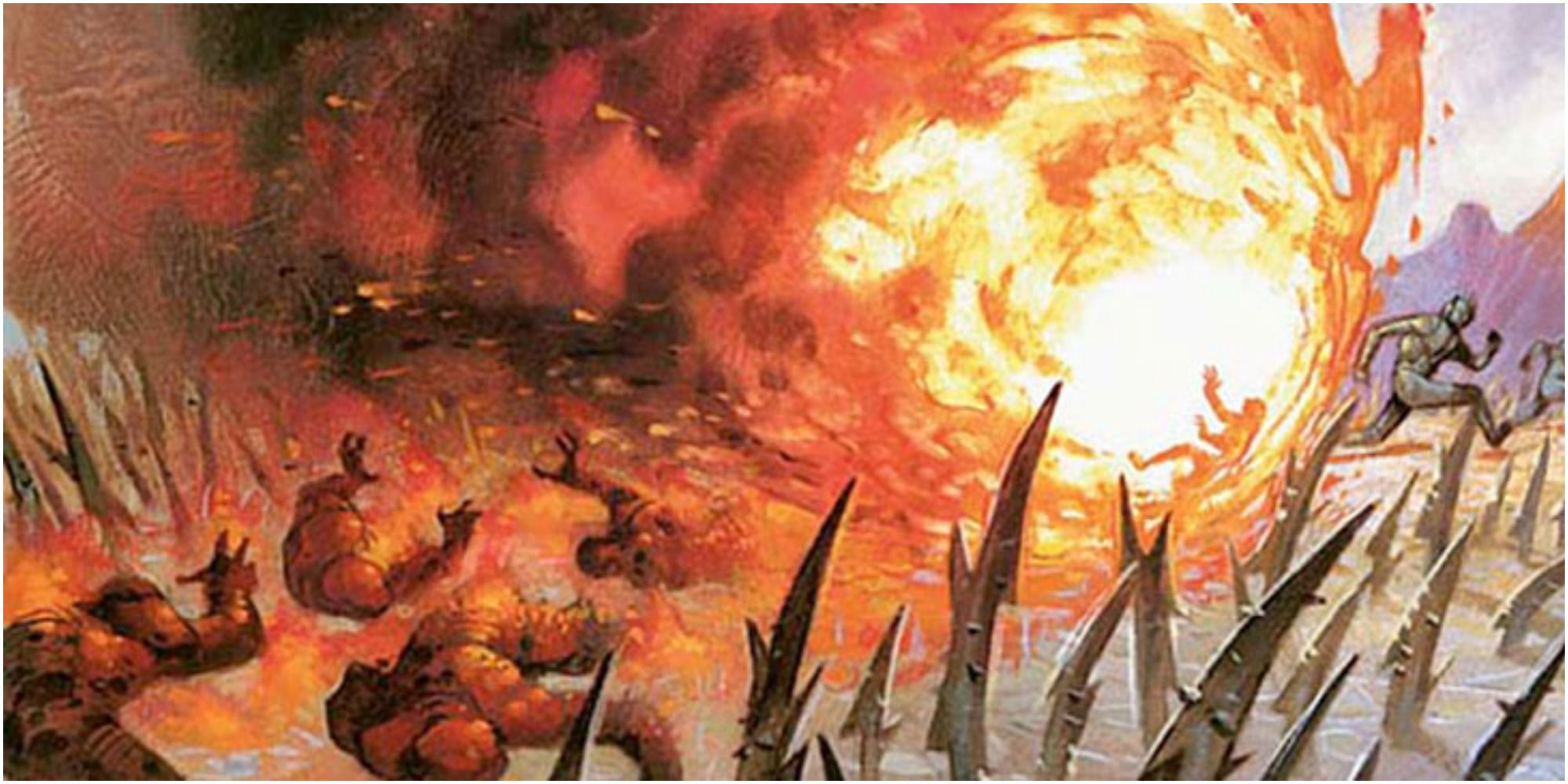 Un hechizo de tercer nivel que inflige 8D6 de daño por fuego a cada criatura en un radio de veinte pies, mientras que esto es impresionante desde el punto de vista de la producción de daños, es increíblemente lineal su uso. Esto se debe a que daña a todas las criaturas dentro de su radio, lo que significa que cuando se utiliza en un espacio cerrado como una cueva, es inutilizable sin ponerse a sí mismo y a sus aliados en peligro.
