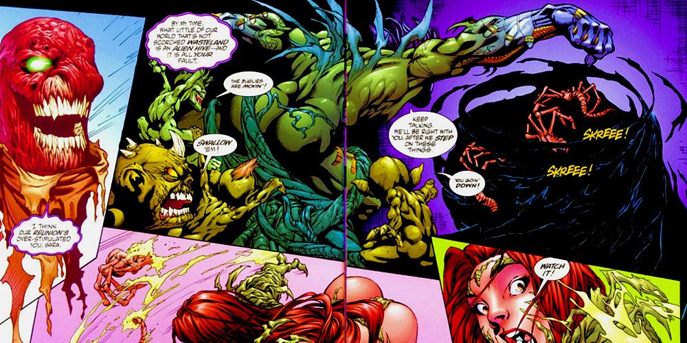 Que el cielo se apiade de quien haya tenido esta idea, pero sin embargo es algo que ocurrió. Este cruce de tres temas entre Dark Horse y Top Cow Productions debe haber sido entintado junto con copiosas cantidades de alcohol y el posible uso de drogas ilícitas para llegar al panel final.