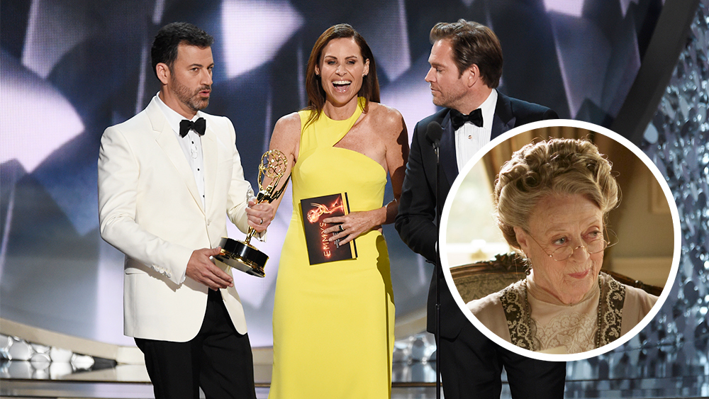 - La elegancia de la Condesa: Nada más dar inicio a la ceremonia, Kimmel bromeaba en su monólogo con la ausencia reiterada en las distintas ediciones de la actriz Maggie Smith; “Este año tenemos una nueva norma, si resultas premiado y no estás aquí para recoger el Emmy, se lo daremos al siguiente de la lista. Lo hemos llamado la Norma Maggie Smith”. Por supuesto, cuando Maggie Smith se convirtió un año más en la galardonada como Mejor Actriz de Reparto en Serie Dramática por su papel de la Condesa de Grantham en ‘Downtown Abbey’ y no estaba ahí para recoger el premio, Kimmel subió al escenario, arrebató el trofeo de manos de Minnie Driver que lo presentaba y se lo llevó consigo, remitiendo a la veterana actriz que si lo quería, tendría que reclamar a la oficina de objetos perdidos. Maggie Smith, antes que darse por ofendida, ha compartido un breve comunicado donde agradecida por el reconocimiento solicitaba al sr. Kimmel la dirección de la oficina de objetos perdidos.