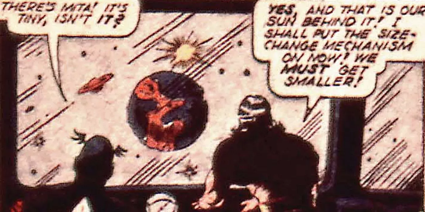La primera aparici贸n cronol贸gica del Microverso en los c贸mics fue el planeta microsc贸pico de Mita. Debut贸 en la historia de Ray Cummings y Syd Shores "The Princess of the Atom" de Captain America Comics #26 (mayo de 1943). Una mujer llamada Dianne Ferrule busc贸 al Capit谩n Am茅rica y a Bucky para que la ayudaran a salvar el mundo de Mita.