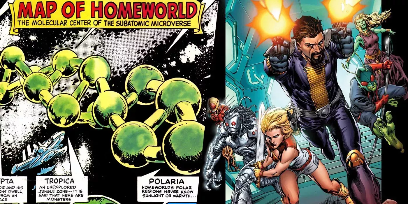 El Capit谩n Am茅rica y Bucky fueron en realidad los primeros en entrar en el Microverso en un intento de ayudar al mundo de Mita. Los Cuatro Fant谩sticos se enfrentaron a poderosos villanos del reino de Sub-At贸mica. Los heroicos Micronautas lucharon por la cadena molecular conocida como Homeworld. Aunque estos mundos s贸lo se presentaron en el Reino Cu谩ntico del MCU, desempe帽aron un papel importante en los c贸mics.