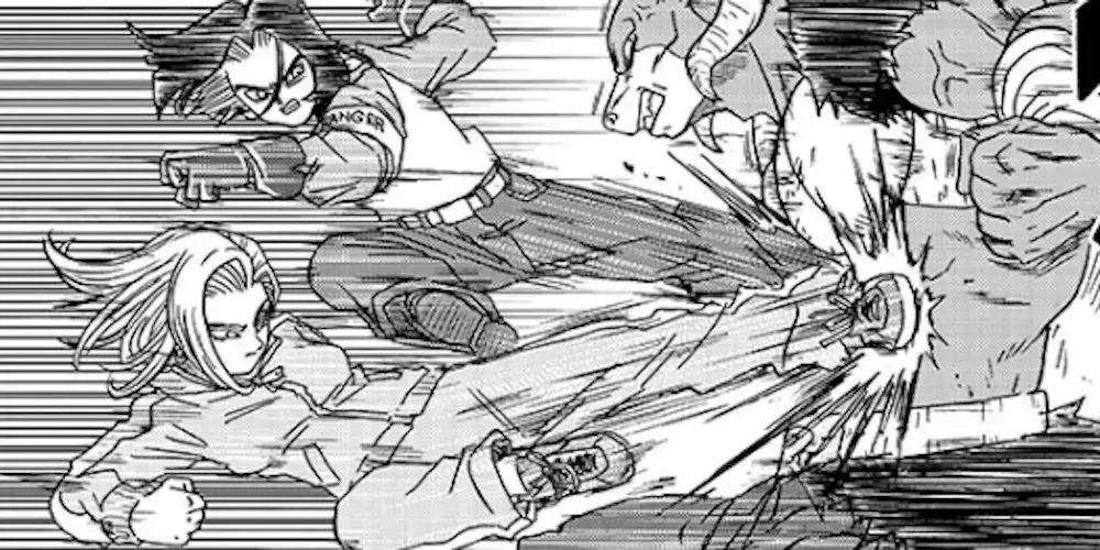 Androide 18 hace su parte contra este enemigo, lo que trágicamente acaba con ella consumida por la amenaza Majin. Lo importante aquà es que Androide 18 sigue dispuesta a enfrentarse a Buu, incluso cuando las probabilidades están en su contra. Hará lo que sea necesario para defender a sus seres queridos.