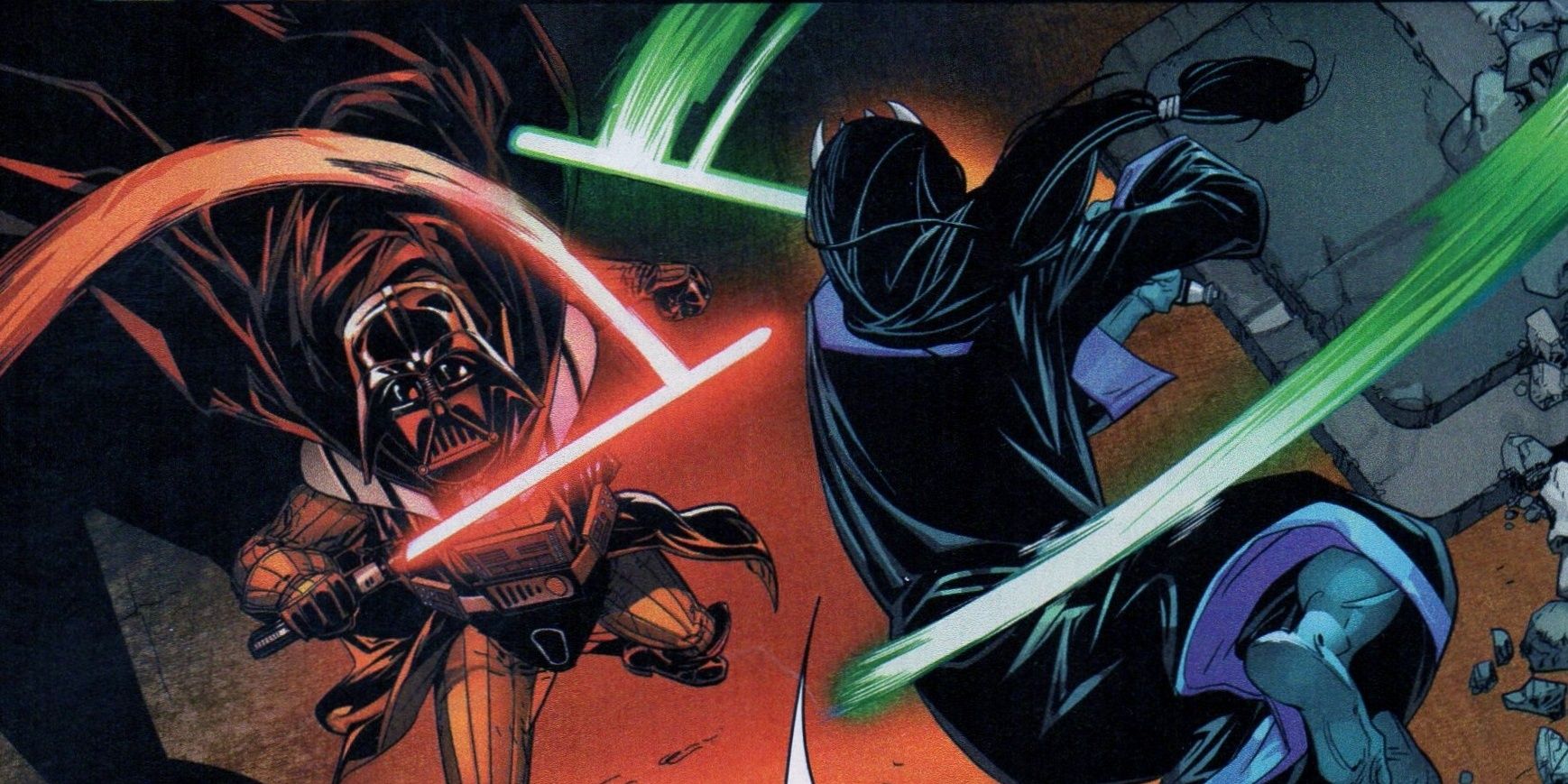 Al meditar, sin darse cuenta de la carnicería, Vader dudó por un segundo antes de apuñalarla en el pecho con su sable de luz, sin siquiera concederle la misericordia de una muerte honorable. Anakin Skywalker había luchado junto a Shaak Ti en las Guerras Clonadas, y verle cortar a un camarada de armas tan casualmente mostró lo lejos que estaba incluso a estas alturas.